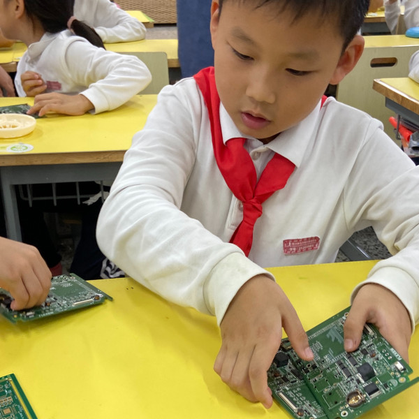 陪伴小朋友講課的是壹玖肆貳科技有限公司AI工程師虞新建叔叔,也是壹玖肆貳科技總經理! 他在跟小朋友講解過程中用到一些SMT貼片加工元器件,引起了同學們極大的好奇心。給龍外二年級9班的孩子們帶來了一堂別開生面的機器人誕生講解課堂。也給龍外的同學們詮釋了什么是機器人。生動活潑地講解了機器人誕生的過程、機器人的歷史等等。
